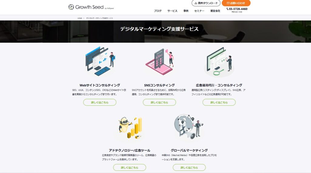 広告・SEO・SNS・Webサイト・アプリなど、外部メディアから自社メディアまで幅広い集客施策を一気通貫で支援できる点が特長で、企業ごとの課題や目的に応じて最適なマーケティング施策を設計・実行します。